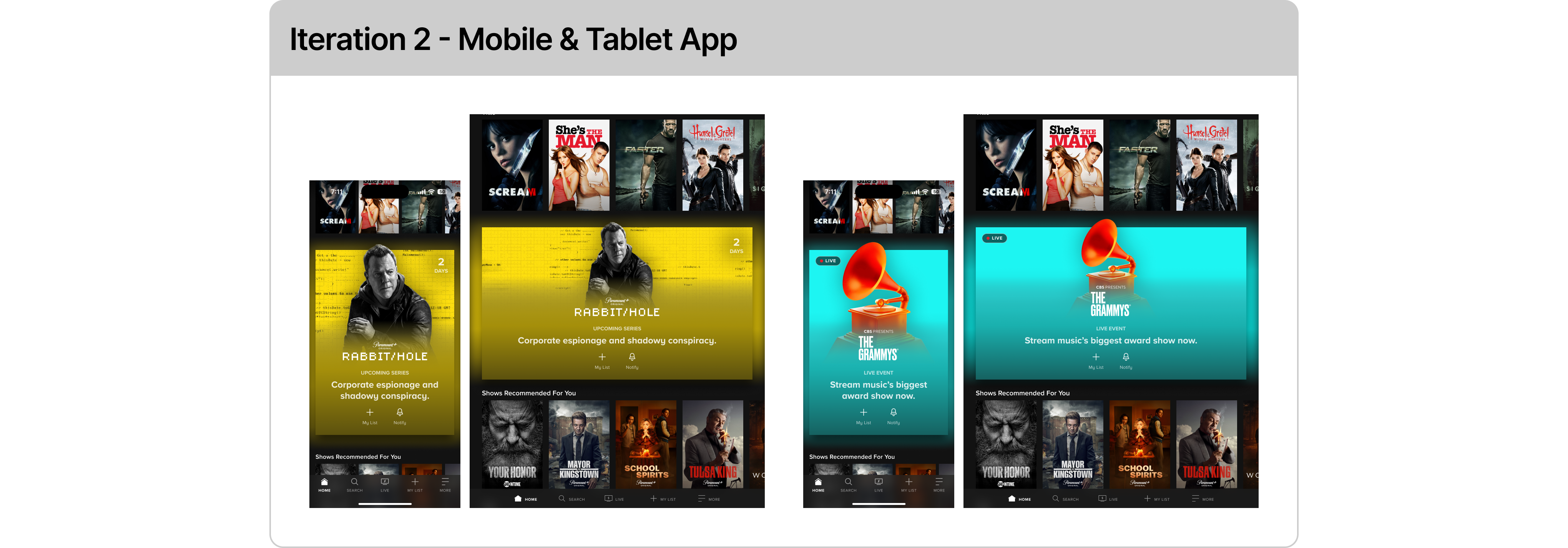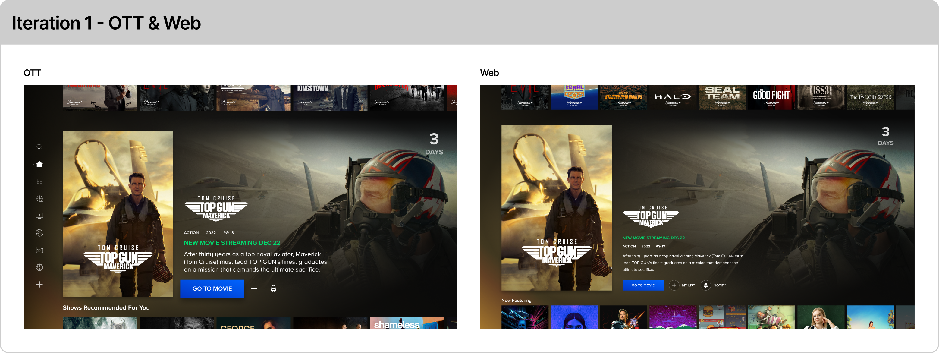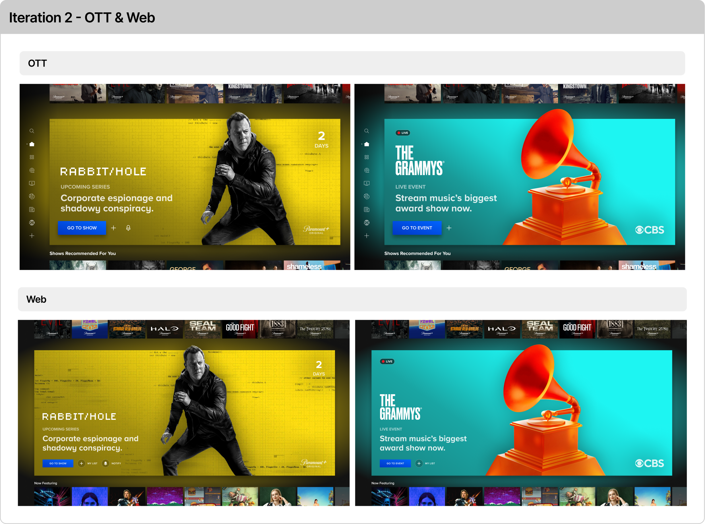 All 4 developer teams did a spike to find a solution to transition in and out of our content highlight experience to make room for a promotional spotlight unit without breaking the mechanics of our current discovery experience. Each team came up with their own unique solution, some platforms having more limitations than others.